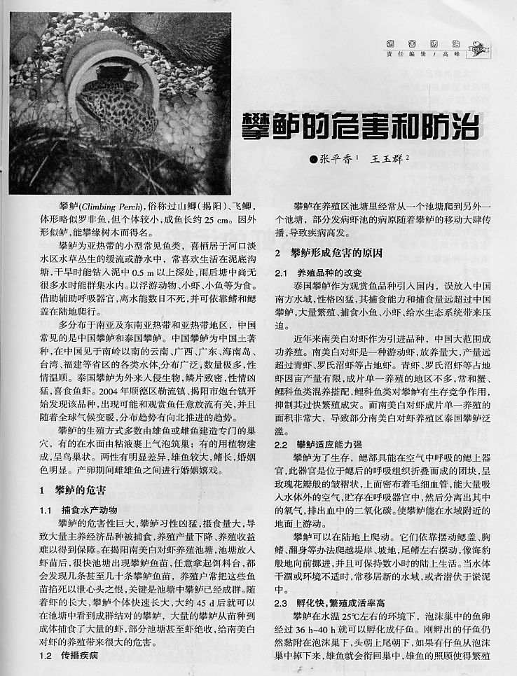 攀鱸的危害和防治1