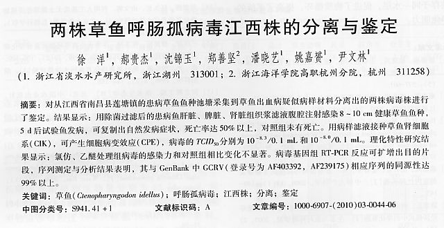 兩株草魚(yú)呼腸病毒江西株的分離與鑒定