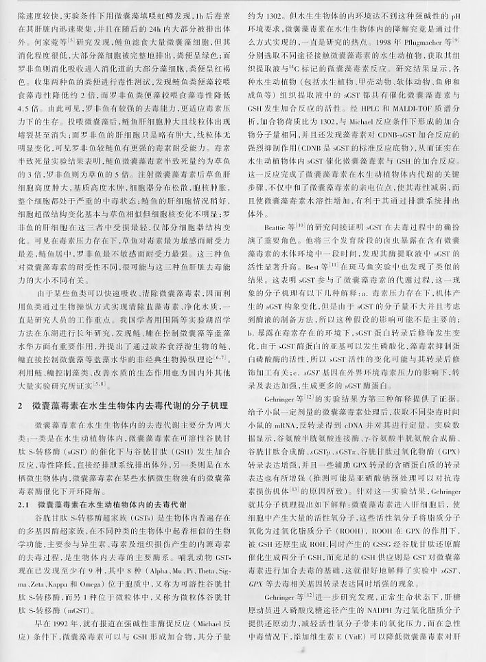 水產(chǎn)生物對微囊藻毒素去毒分子機(jī)理及調(diào)控因子研究2