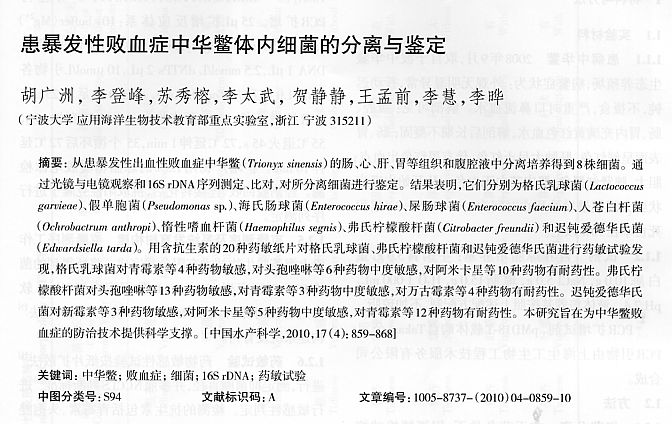 患暴發(fā)性敗血癥中華鰲體內(nèi)細(xì)菌的分離與鑒定