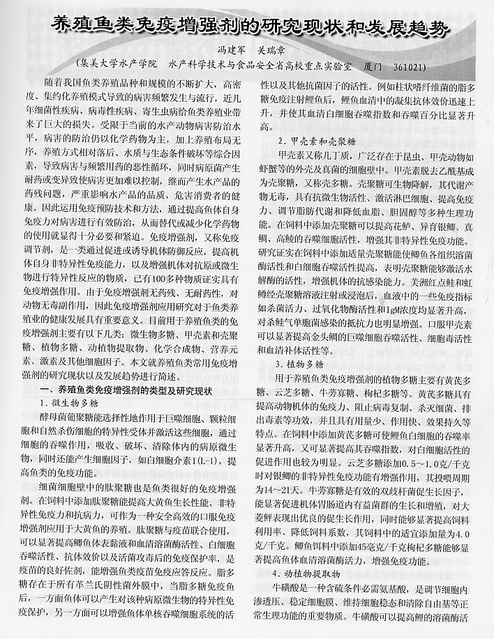 養(yǎng)殖魚類免疫增強劑的研究現(xiàn)狀和發(fā)展趨勢1