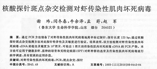 核酸探針斑點雜交檢測對蝦傳染性肌肉壞死病毒