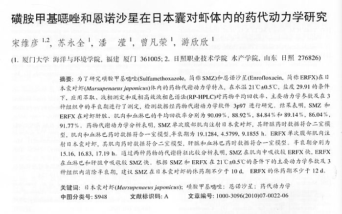 磺胺甲基噁唑和恩若沙星在日本囊對(duì)蝦體內(nèi)的藥代動(dòng)力學(xué)研究