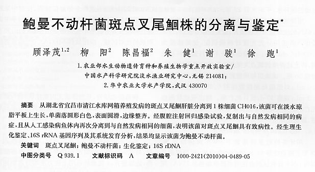 鮑曼不動桿菌斑點叉尾鮰株的分離與堅定