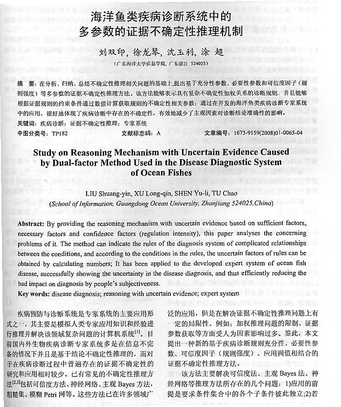 海洋魚類疾病診斷系統(tǒng)中的多參數(shù)的證據(jù)不確定性推理機制1