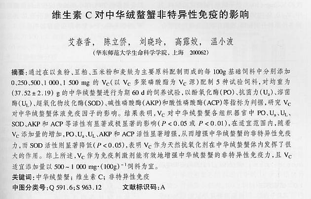 維生素C對(duì)中華絨螯蟹非特異性免疫的影響