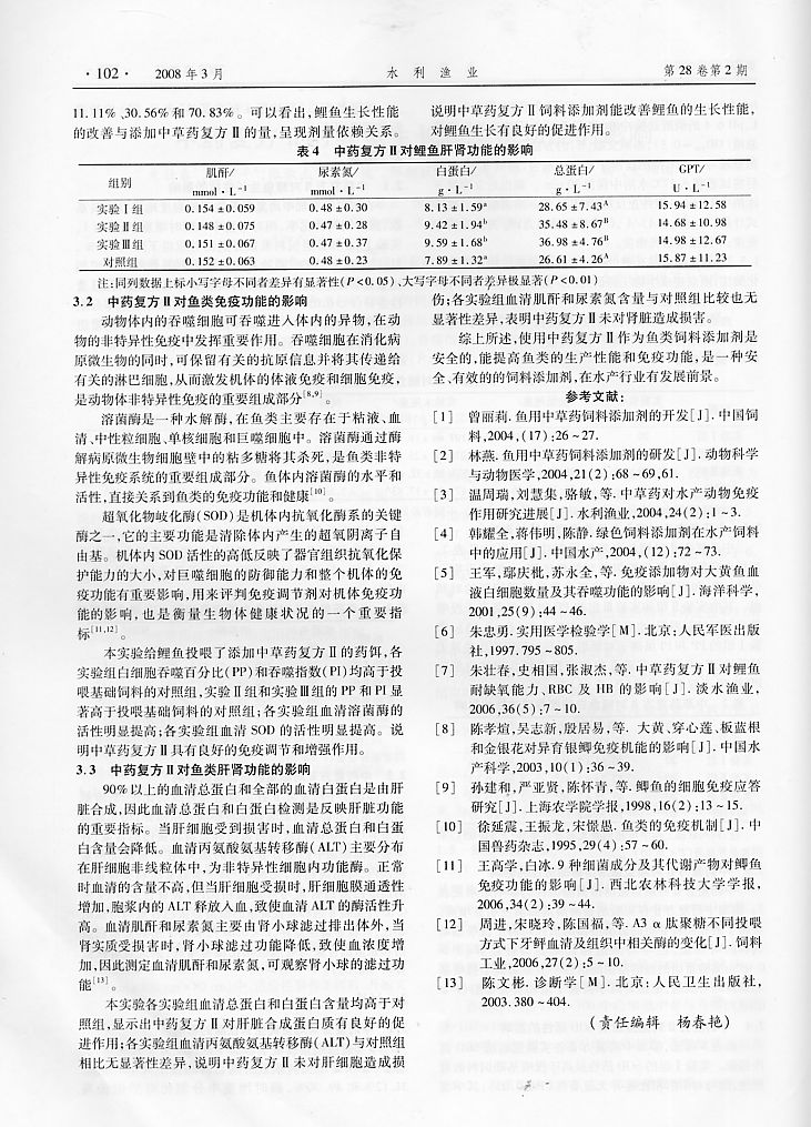 中藥復方II對鯉魚生長和免疫功能的影響3
