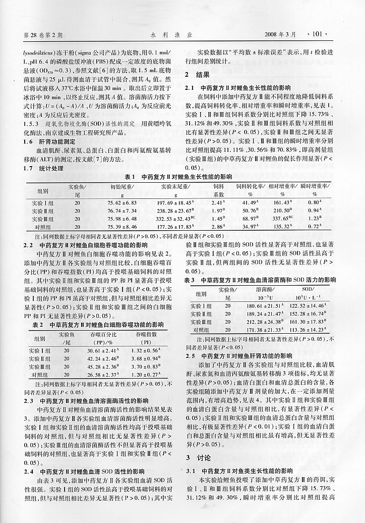中藥復方II對鯉魚生長和免疫功能的影響2