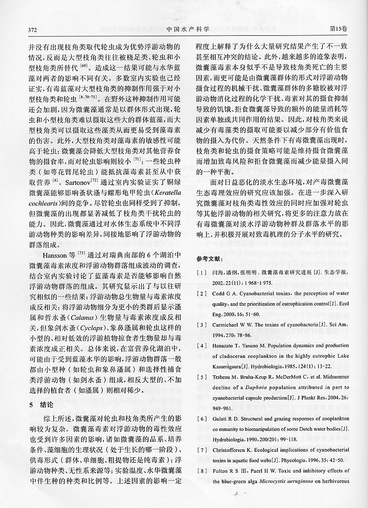 微囊藻水華對(duì)淡水浮游動(dòng)物輪蟲(chóng)和枝角類影響的研究進(jìn)展6
