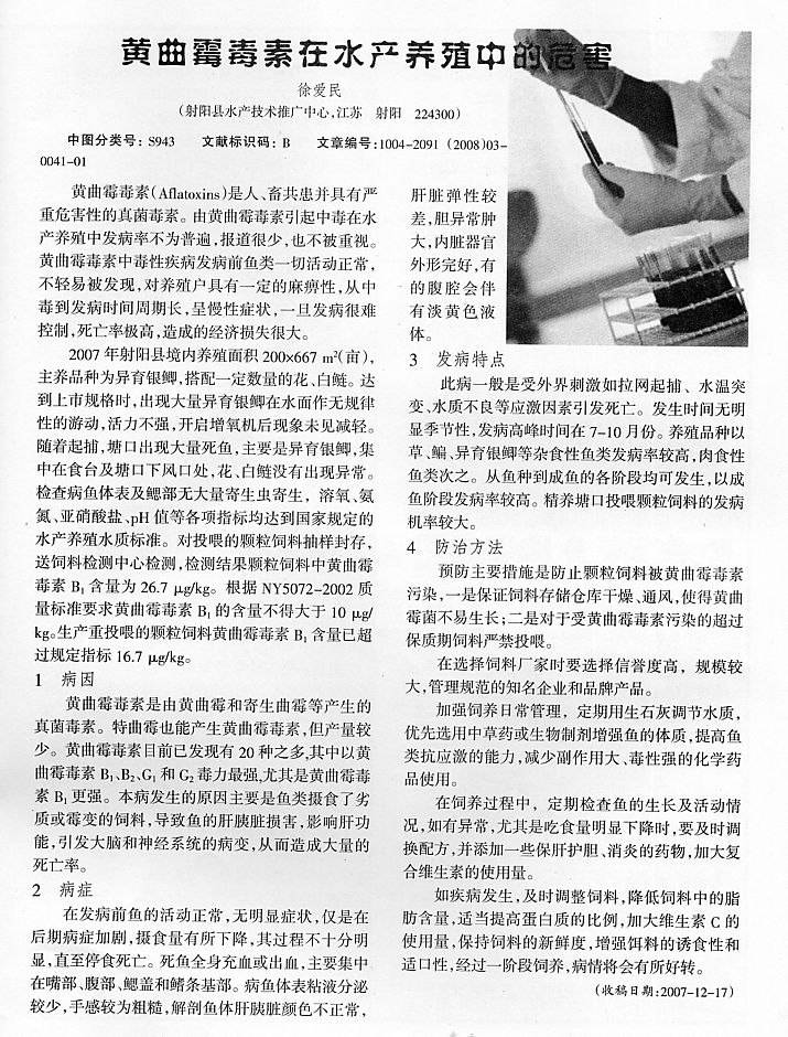 黃曲霉毒素在水產(chǎn)養(yǎng)殖中的危害
