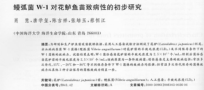 鰻弧菌W-1對(duì)花鱸魚苗致病性的初步研究