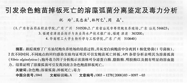 引發(fā)雜色鮑苗掉板死亡的溶藻弧菌分離鑒定及毒力分析