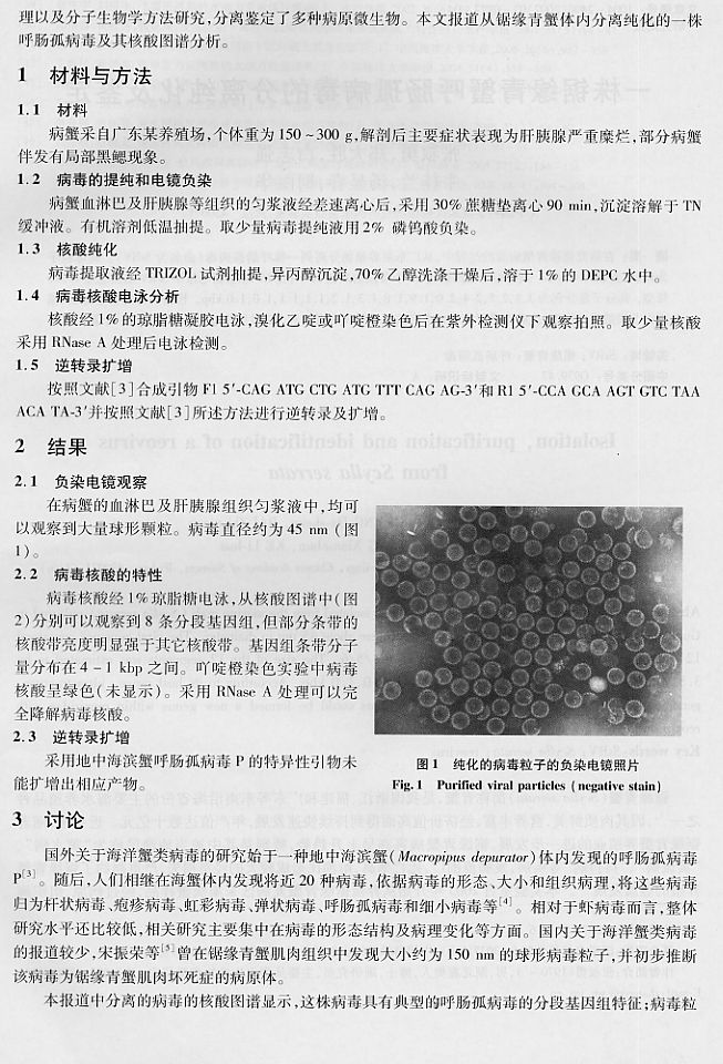 一株鋸緣青蟹呼腸孤病毒的分離純化及鑒定2