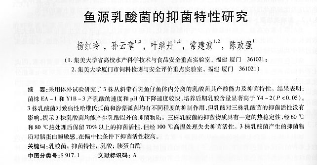 魚源乳酸菌的抑菌特性研究