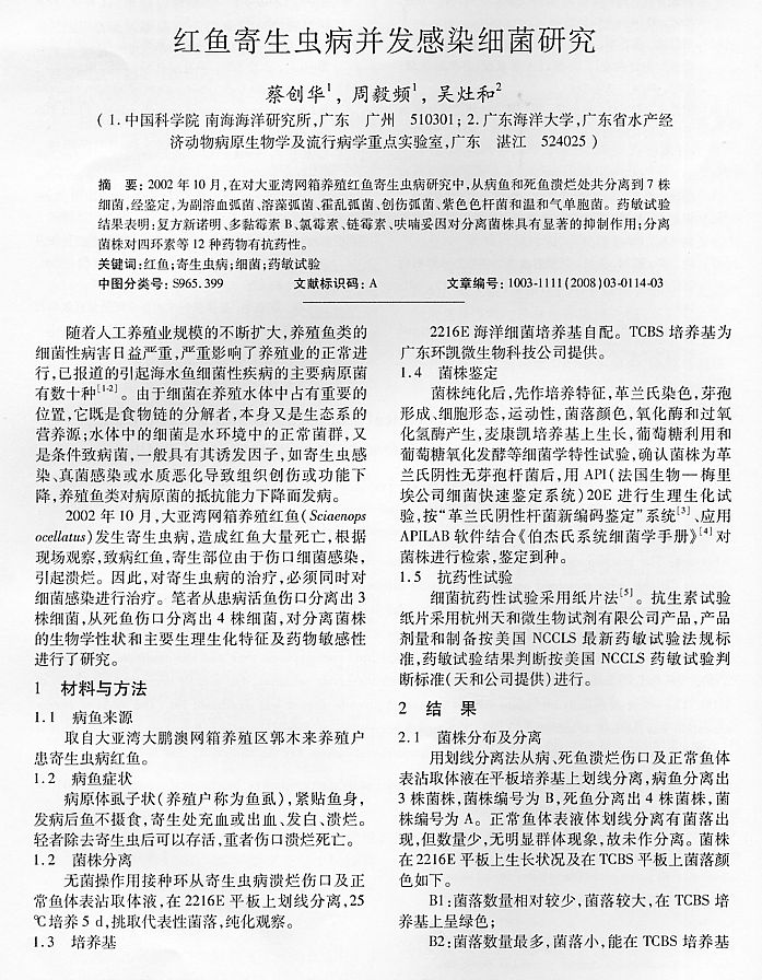 紅魚寄生蟲病并發(fā)感染細(xì)菌研究1