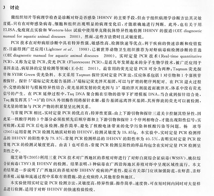 常規(guī)PCR、實(shí)時(shí)定量PCR檢測(cè)傳染性皮下及造血器官壞死病毒的效果分析2