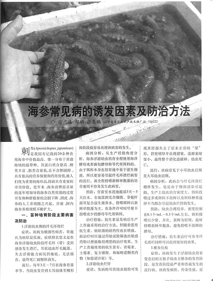 海參常見病的誘發(fā)因素及防治方法1