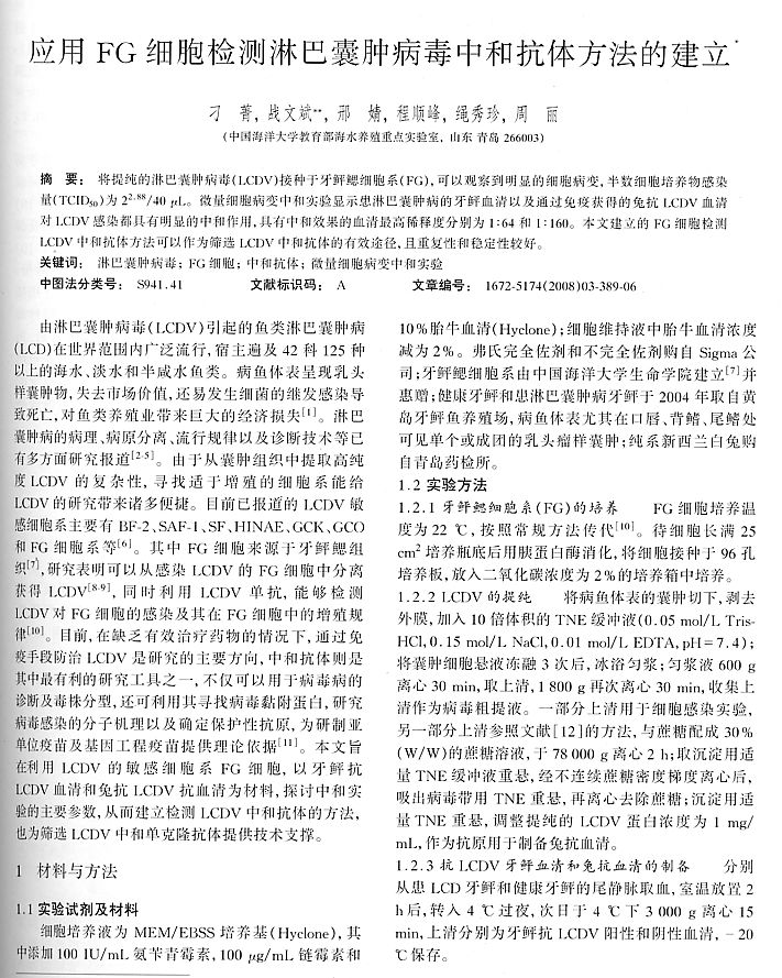 應(yīng)用FG細(xì)胞檢測淋巴囊腫病毒中和抗體方法的建立1
