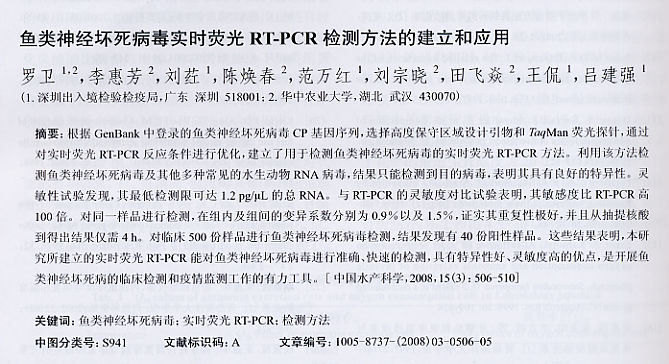 魚類神經(jīng)壞死病毒實(shí)時熒光RT-PCR檢測方法的建立和應(yīng)用