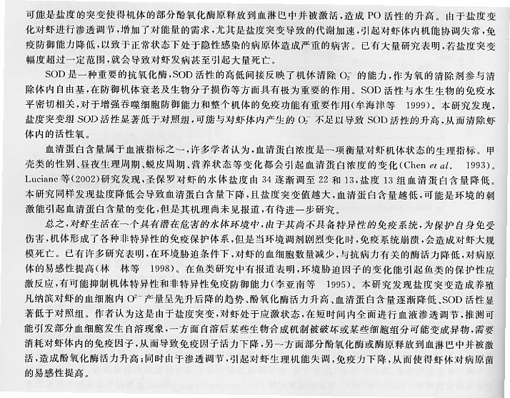 鹽度突變對凡納濱對蝦非特異性免疫因子的影響5