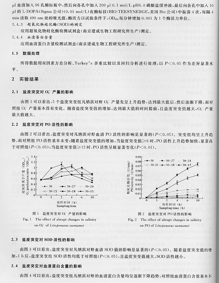 鹽度突變對凡納濱對蝦非特異性免疫因子的影響3