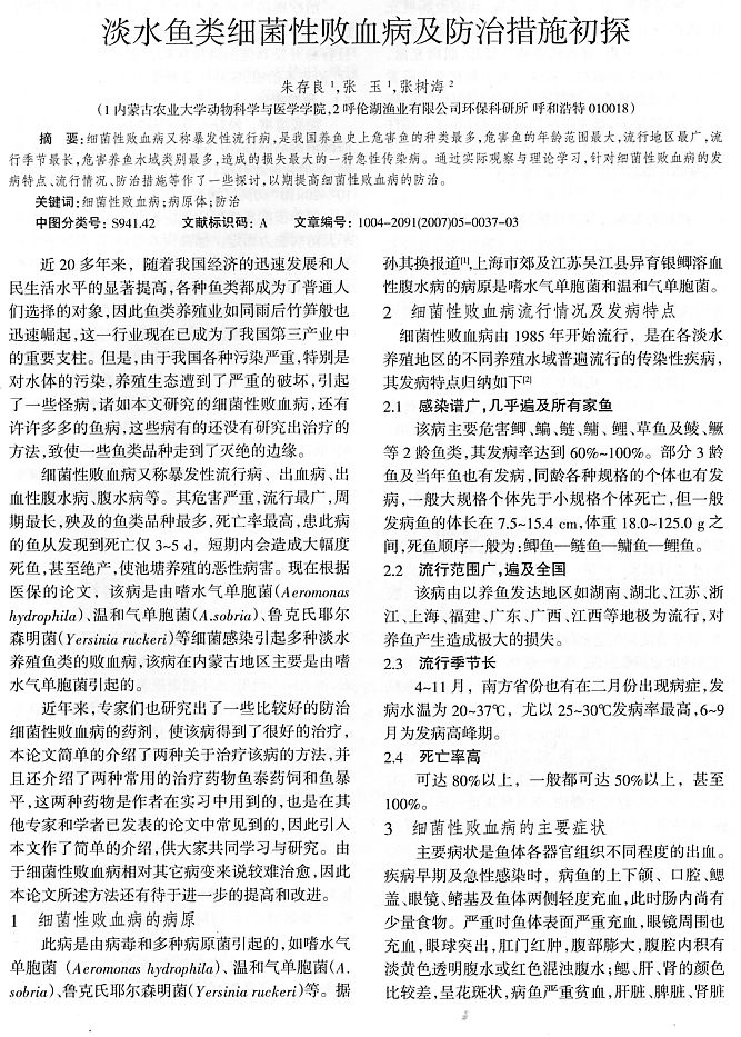 淡水魚類細(xì)菌性敗血病及防治措施初探1