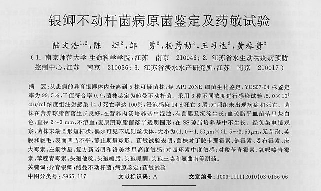 銀鯽不動(dòng)桿菌病原菌鑒定及藥敏試驗(yàn)