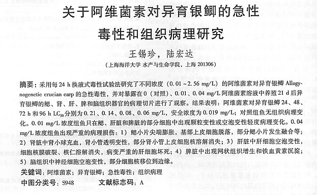 關(guān)于阿維菌素對異育銀鯽的急性毒性和組織病理研究
