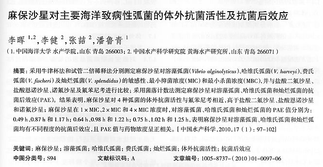 麻保沙星對(duì)主要海洋致病性弧菌的體外抗菌活性及抗菌后效應(yīng)