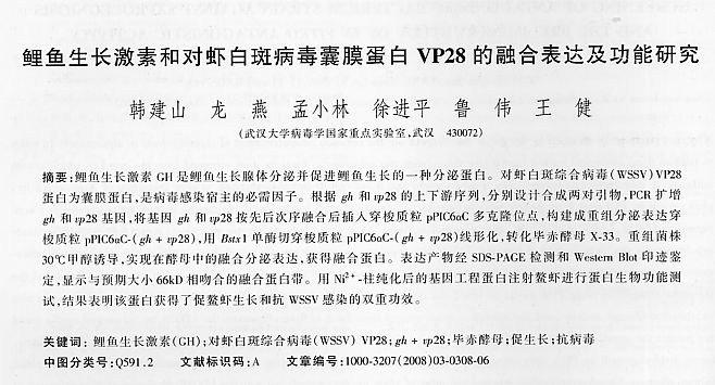 鯉魚生長激素和對蝦白斑病毒囊膜蛋白VP28的融合表達(dá)及功能研究1
