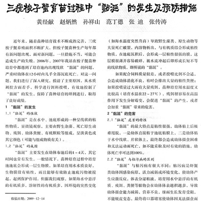 三疣梭子蟹魚苗過程中“黏涎”的發(fā)生及預(yù)防措施1