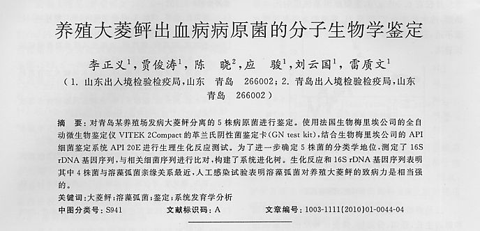 養(yǎng)殖大菱鲆出血病病原菌的分子生物學(xué)鑒定
