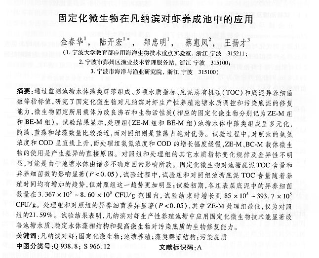 固定化微生物在凡納濱對蝦養(yǎng)成池中的應(yīng)用