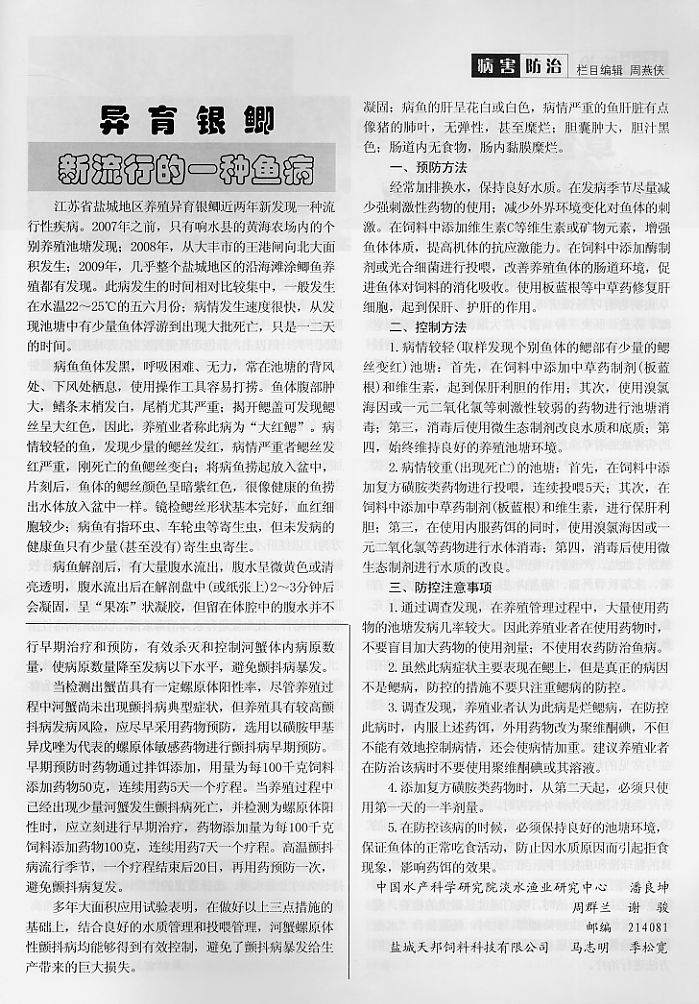 異育銀鯽新流行的一種魚(yú)病