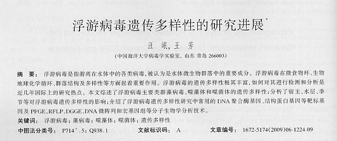浮游病毒遺傳多樣性的研究進(jìn)展