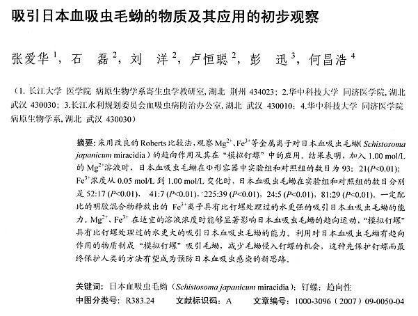 吸引日本血吸蟲毛蚴的物質(zhì)及其應(yīng)用的初步觀察