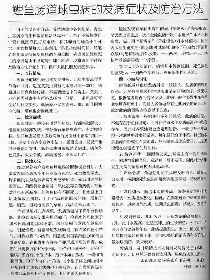 鯉魚(yú)腸道球蟲(chóng)病的發(fā)病癥狀及防治方法