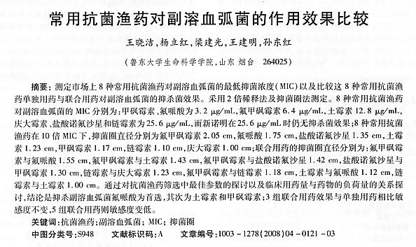 常用抗菌漁藥對副溶血弧菌的作用效果比較