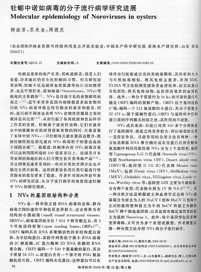 牡蠣中諾如病毒的分子流行病學(xué)研究進(jìn)展1