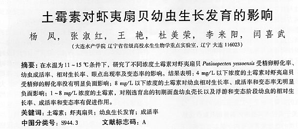 土霉素對蝦夷扇貝幼蟲生長發(fā)育的影響1