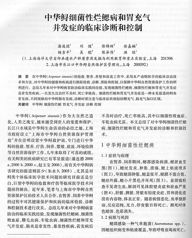 中華鱘細(xì)菌性爛鰓病和胃充氣并發(fā)癥的臨床診斷和控制1