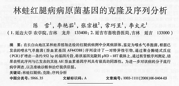 林蛙紅腿病病原菌基因的克隆及序列分析