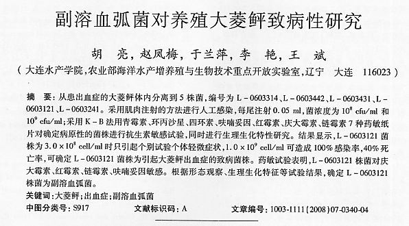 副溶血弧菌對(duì)養(yǎng)殖大菱鲆致病性的研究1