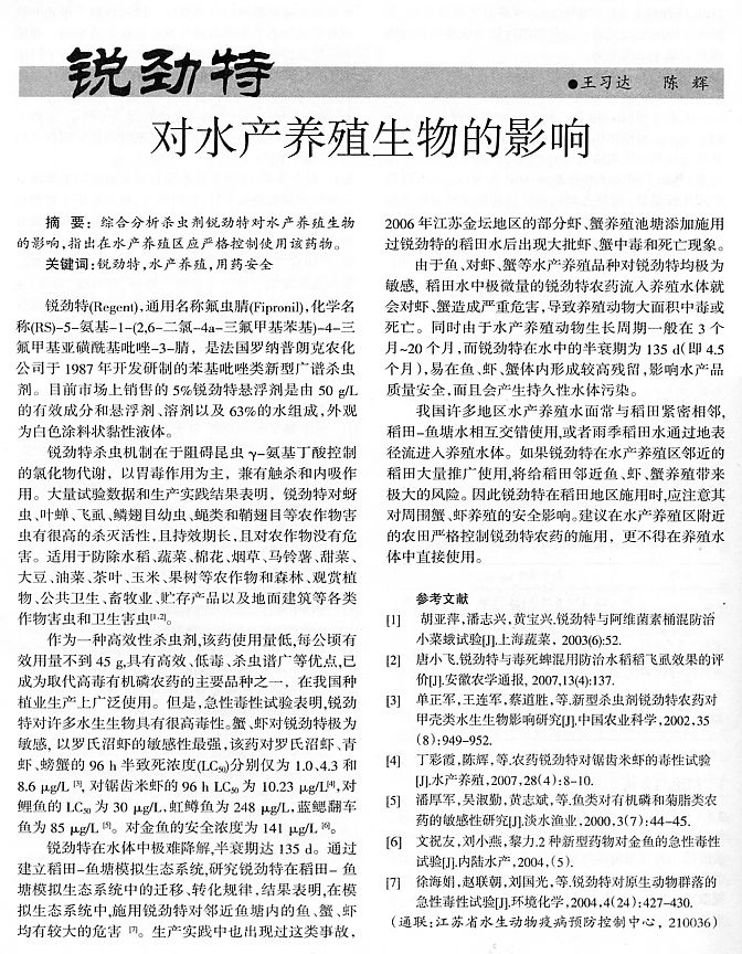 銳勁特對水產(chǎn)養(yǎng)殖生物的影響