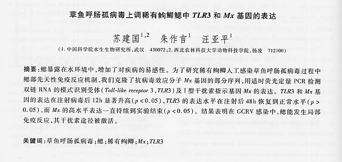 草魚呼腸孤病毒上調(diào)稀有鮈鯽鰓中TLR3和Mx基因的表達(dá)