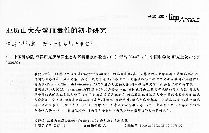 亞歷山大藻溶血毒性的初步研究
