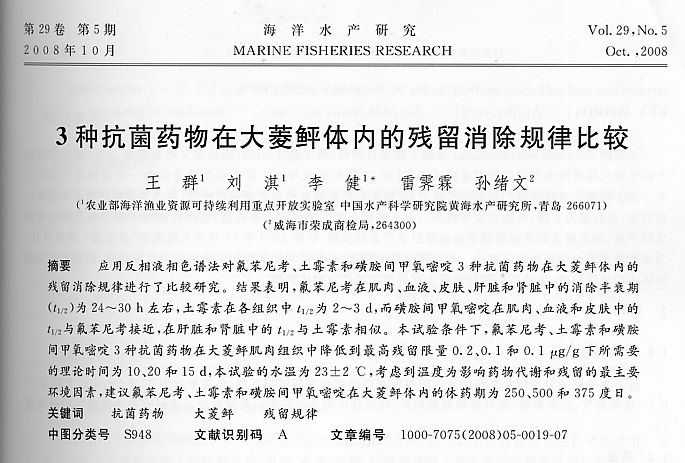 三種抗菌藥物在大菱鲆體內的殘留消除規(guī)律比較