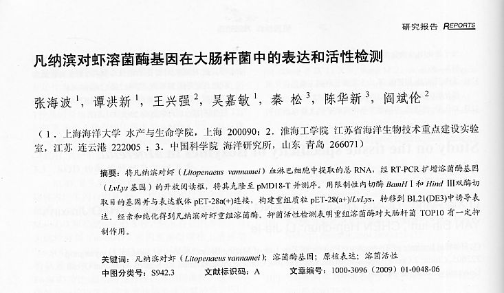 凡納濱對(duì)蝦溶菌酶基因在大腸桿菌中的表達(dá)和活性檢測(cè)
