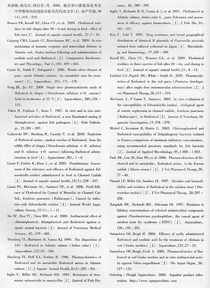 氟苯尼考的藥效學(xué)及其在水產(chǎn)動物中的代謝動力學(xué)研究進(jìn)展5
