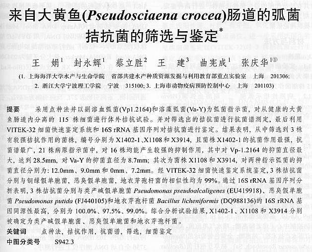 來(lái)自大黃魚腸道的弧菌拮抗的帥選與鑒定